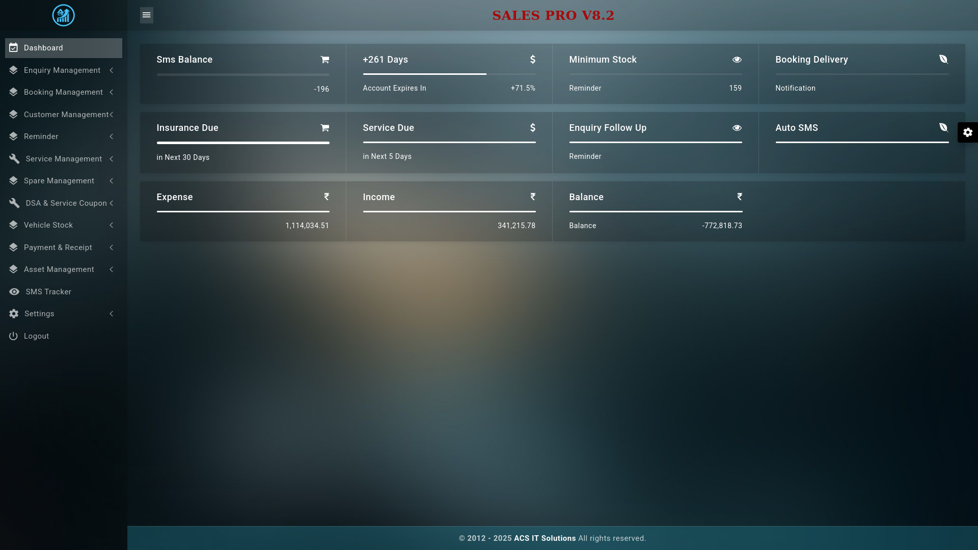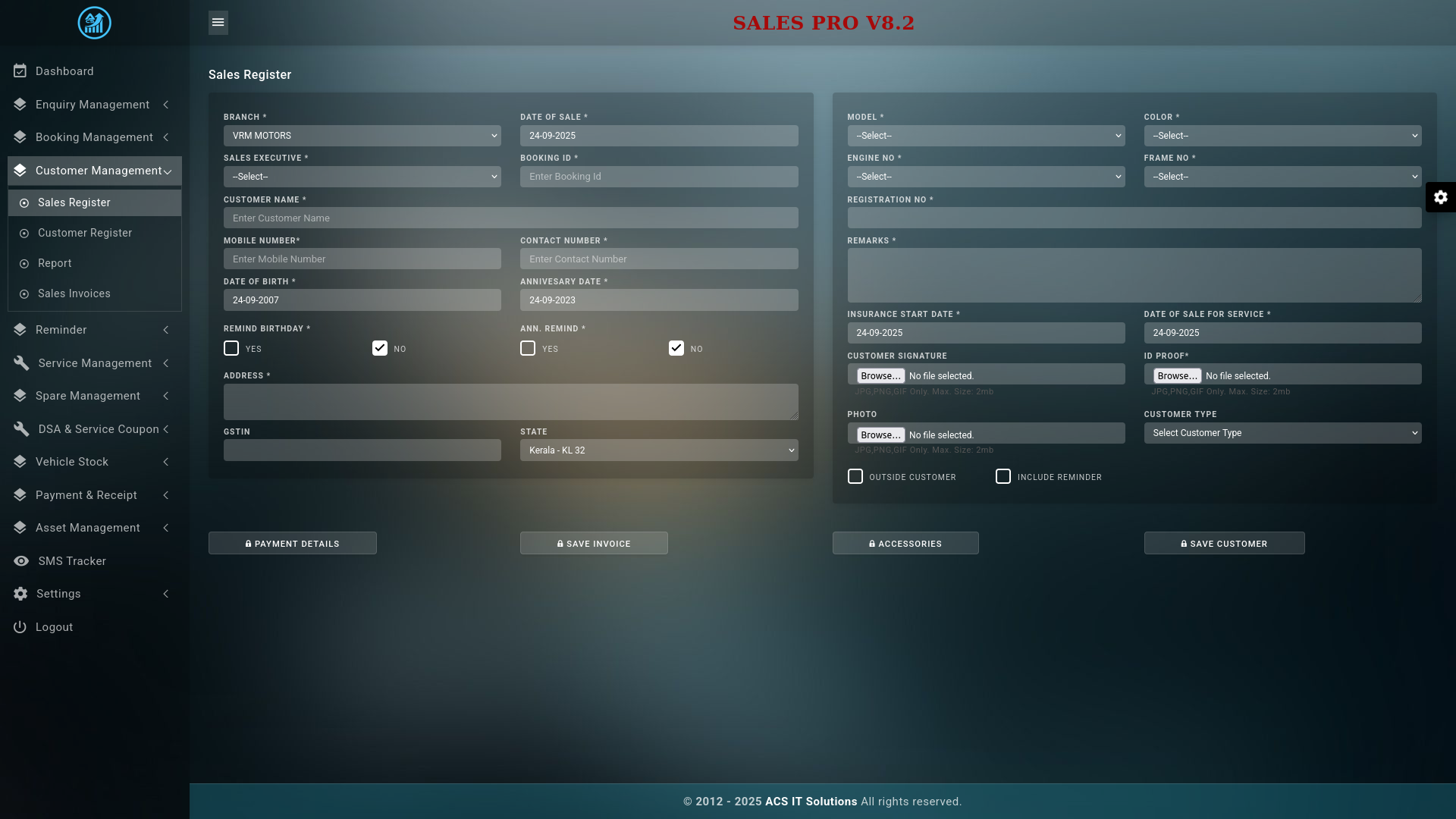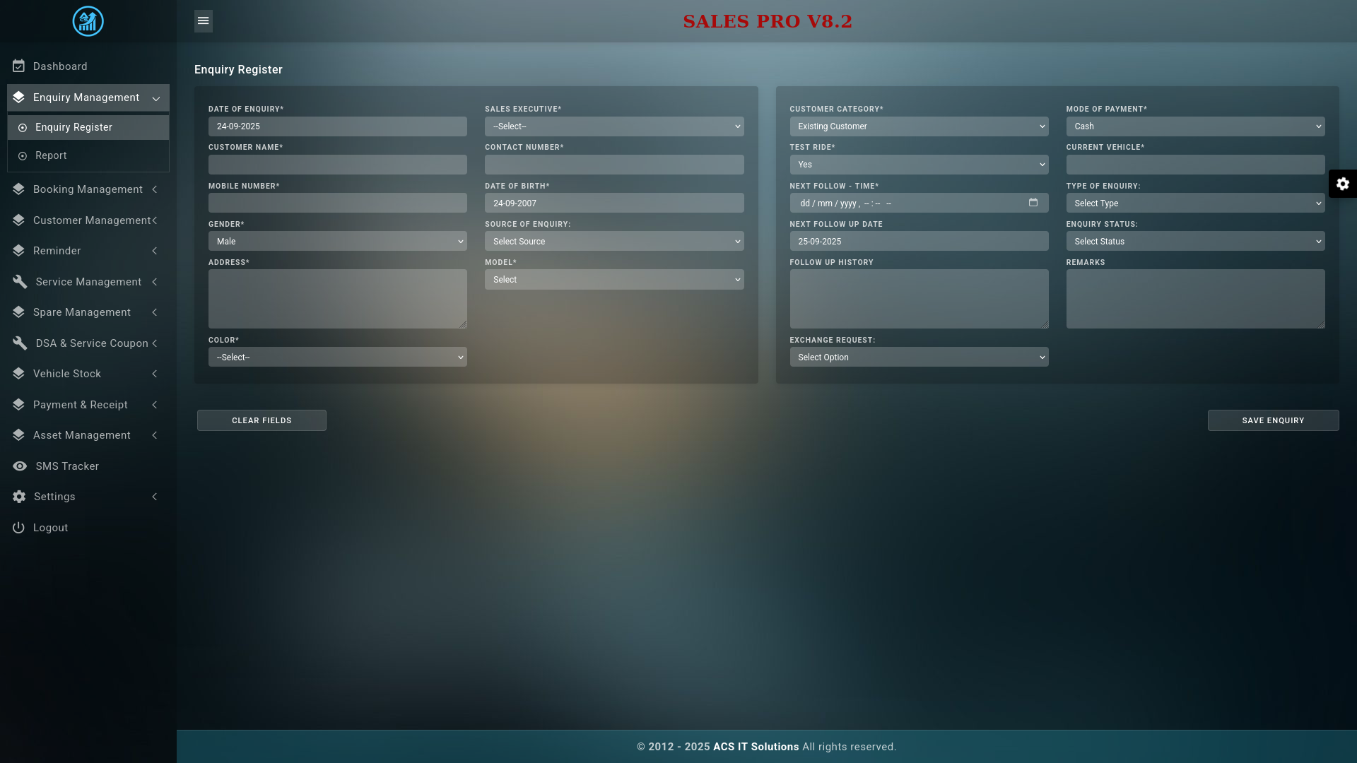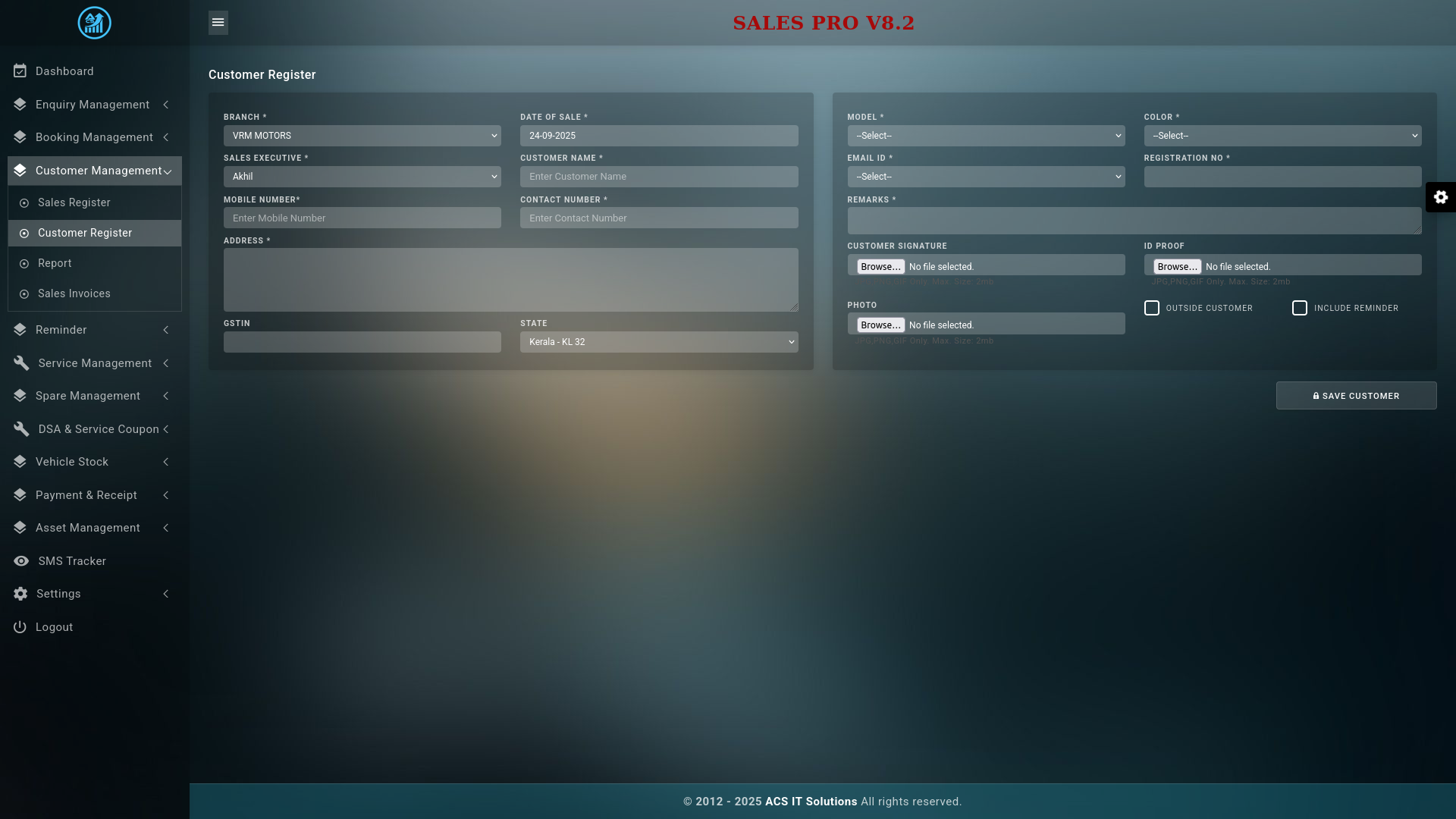 Salespro is software created for an automobile showroom. Now it is working with the 8th and updated version of CRM. It is a complete showroom management software that deals with the inquiry, booking, purchase, and vehicle service of a customer. And also, it is a reminder software, i.e., reminds the vehicle service and vehicle insurance..