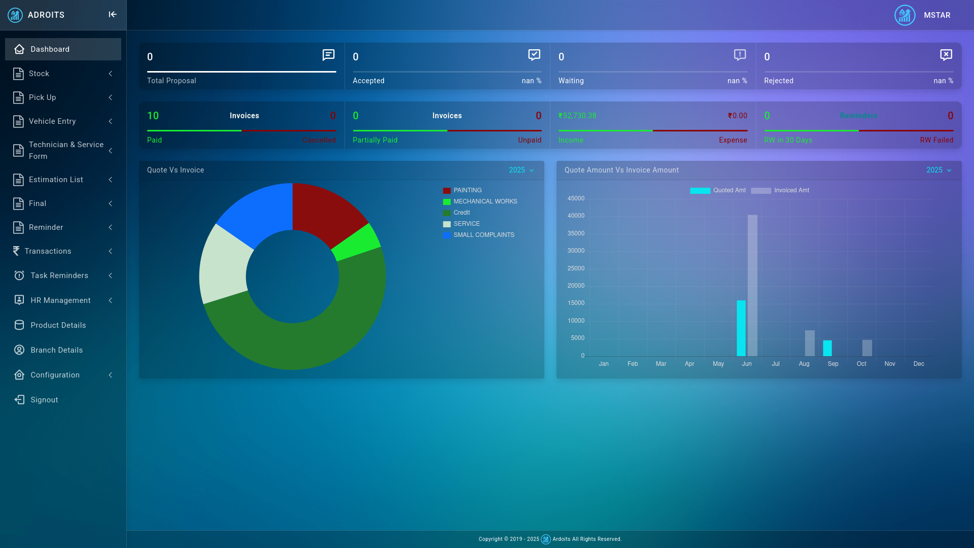 The Invoice module in Sales Pro is a fully automated and integrated billing system that generates accurate, professional invoices directly from completed job cards. It includes all essential details such as customer name, contact information, vehicle details, service type, job number, and a comprehensive list of spare parts and labour charges used during the service. The module automatically applies taxes like GST, calculates discounts, and updates totals without manual entry errors. It supports multiple payment modes including cash, card, UPI, and online transfers, with an option to share the invoice and payment link directly through WhatsApp for quick settlements. Once payment is received, the transaction is instantly recorded in the accounts and stock modules, ensuring complete financial and inventory synchronization. Invoices can be printed or exported as PDFs with professional formatting, company logo, and signature space for both customer and service advisor. The system also maintains a detailed billing history, allowing users to track pending payments, generate daily and monthly reports, and analyze revenue performance. Overall, the Invoice module in Sales Pro simplifies billing operations, improves accuracy, strengthens transparency, and ensures a smooth, paperless financial workflow for vehicle service businesses