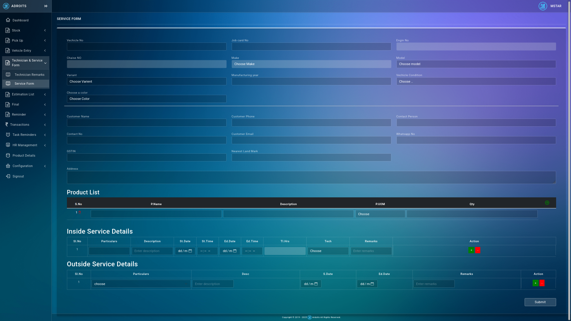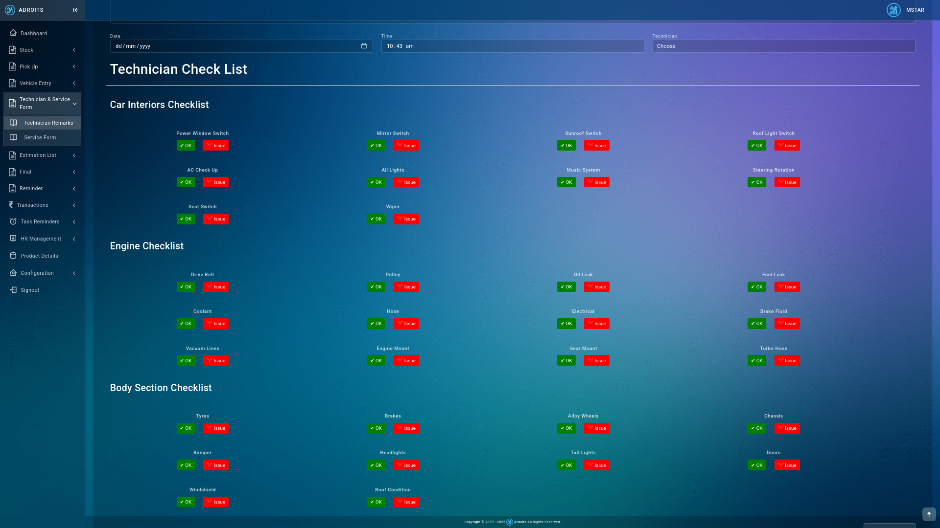 The Technician & Service Form Module in Sales Pro Extended allows seamless management of service jobs by assigning tasks to technicians based on availability and skill. Each service form captures vehicle and customer details, complaint description, technician diagnosis, spare parts used, labour charges, and remarks. Technicians can attach photos and update job progress in real-time, while customers receive WhatsApp notifications for service start, updates, and completion. Integrated with Job Card, Vehicle Entry, Billing, and Inventory modules, it ensures accurate record-keeping, efficient workflow, and improved customer satisfaction.