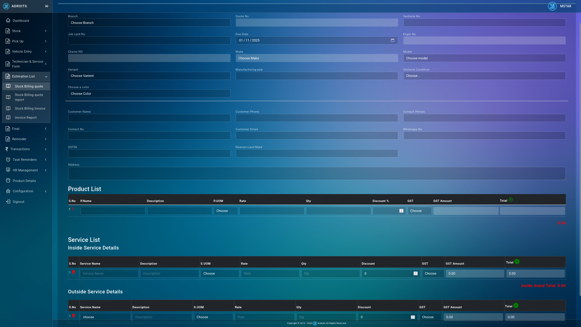 The Estimate module in Sales Pro is a powerful feature designed to create accurate and professional service cost predictions before any repair or maintenance work begins. It allows service advisors to prepare detailed cost estimations that include customer details, vehicle information, service type, and a complete breakdown of required spare parts and labour charges. The module automatically fetches part prices from the inventory and labour rates from the database to ensure consistency and accuracy, while allowing customization for discounts, taxes, or additional charges. Customers can receive the estimate through WhatsApp or email for quick approval, promoting transparency and trust. Once approved, the estimate can be instantly converted into a job card without re-entering data, saving time and avoiding errors. Each estimate is stored for future reference, making it easy to compare, track, and analyze service costs. Integrated with the job card, billing, and stock modules, the Estimate system ensures smooth workflow from customer inquiry to final invoice. Overall, the Sales Pro Estimate module helps workshops improve professionalism, eliminate pricing disputes, and enhance customer satisfaction through clear, upfront communication and seamless digital management.